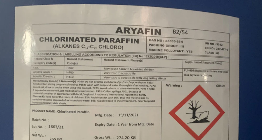 - Tên sản phẩm: Hóa dẻo Chlorinated Paraffin S54 (Paraffin chlor hóa)