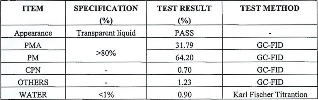 PMA Đài Loan là dung môi công nghiệp có độc tính thấp và có khả năng hòa tan mạnh đối với chất phân cực và không phân cực.